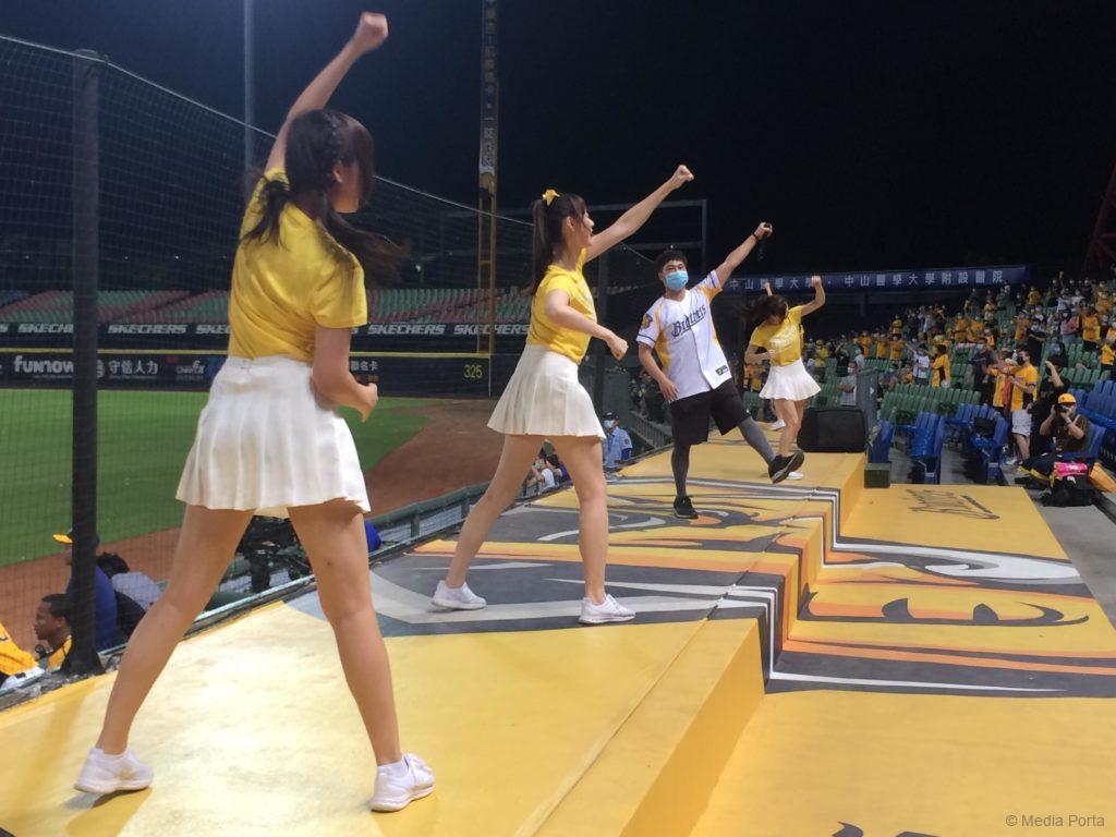 台中洲際球場で、日本企業が今年から初サポートする楽天モンキーズ、チアガール軍団に人気のある中信兄弟エレファンツの試合へ向かいました。