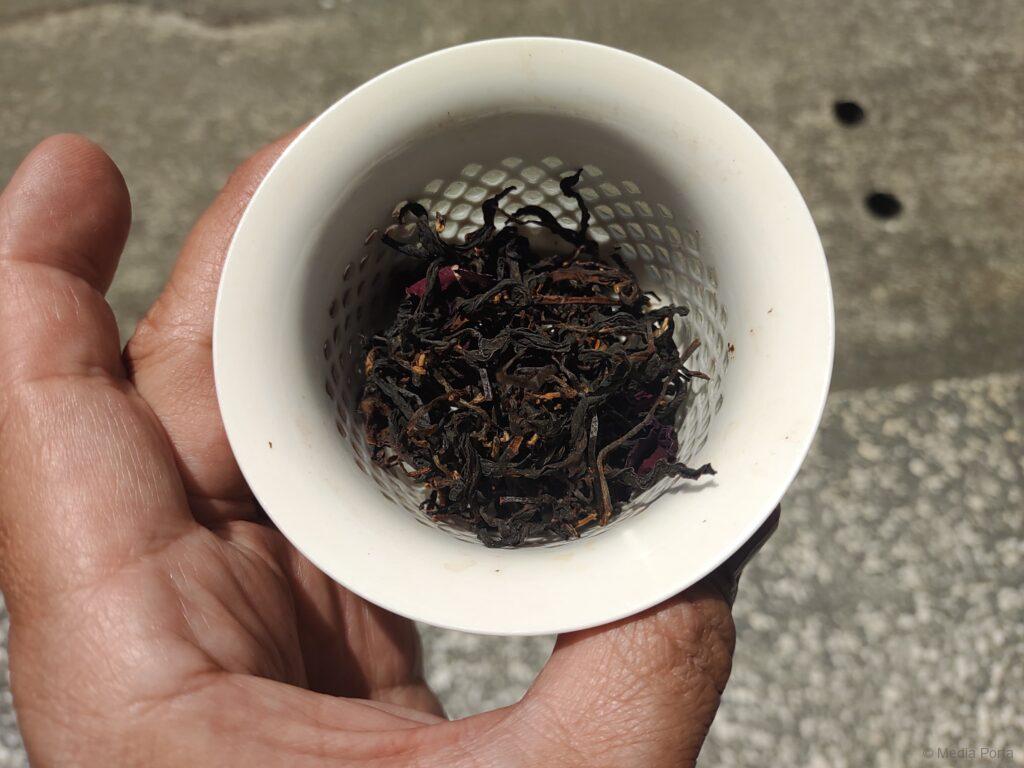 注文はあっという間に3kgを超えた。150gで1袋だから、20袋ご購入ということになる。私も思い切り数袋をいただき、ついでにティバッグも数袋いただいた。茶農家の黄さん曰く、ティーバッグと言ってもこれは質の高いものですよ、と説明してくれた。「製造工程で、摘み取った芯(ファーストフラッシュ)の部分がクズになって溜まるんです。それを集めて作ったティーバッグです。芯の部分ですから、もちろん美味しいです」