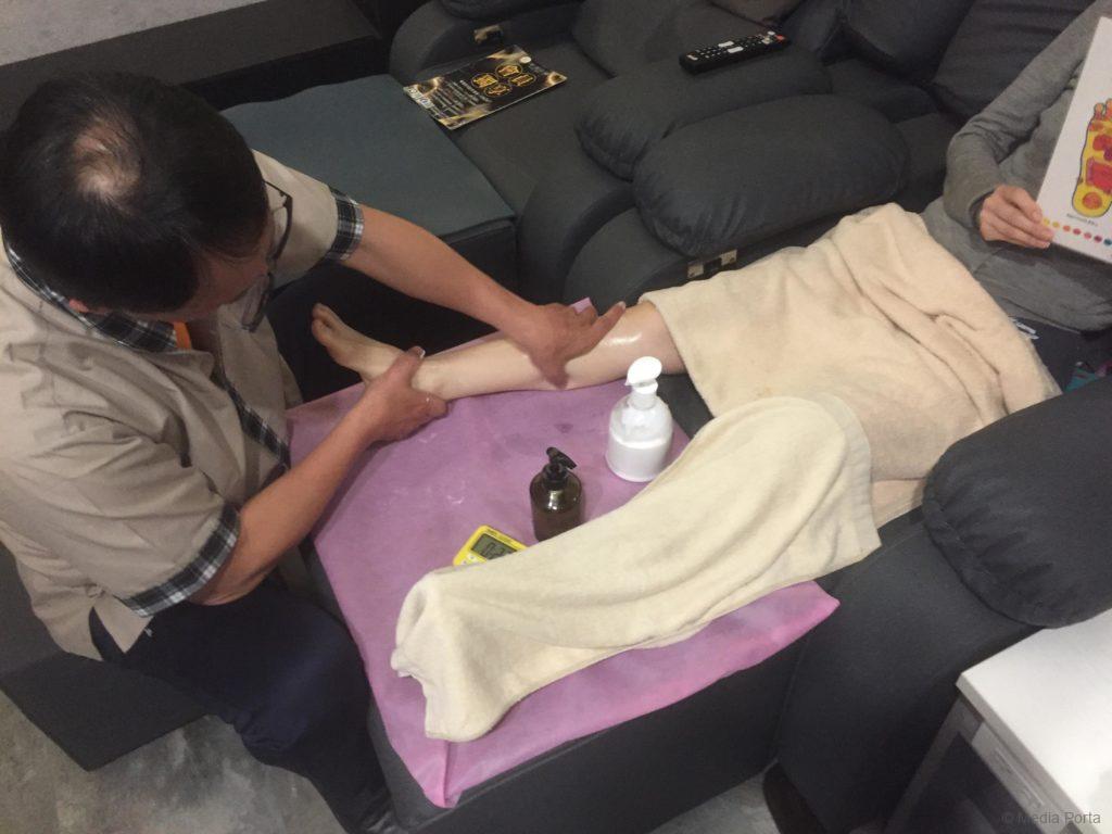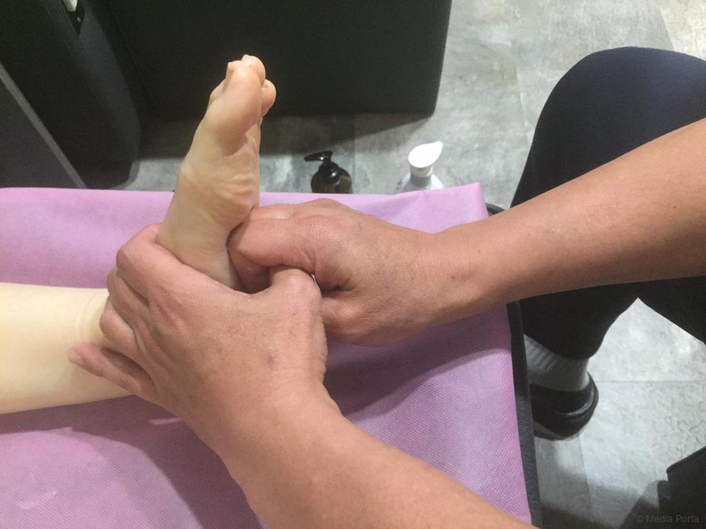 で、まずは足つぼマッサージ30分。痛過ぎずちょうどよい力加減で、何も言ってないのに痛い所を揉みほぐしてくれます。