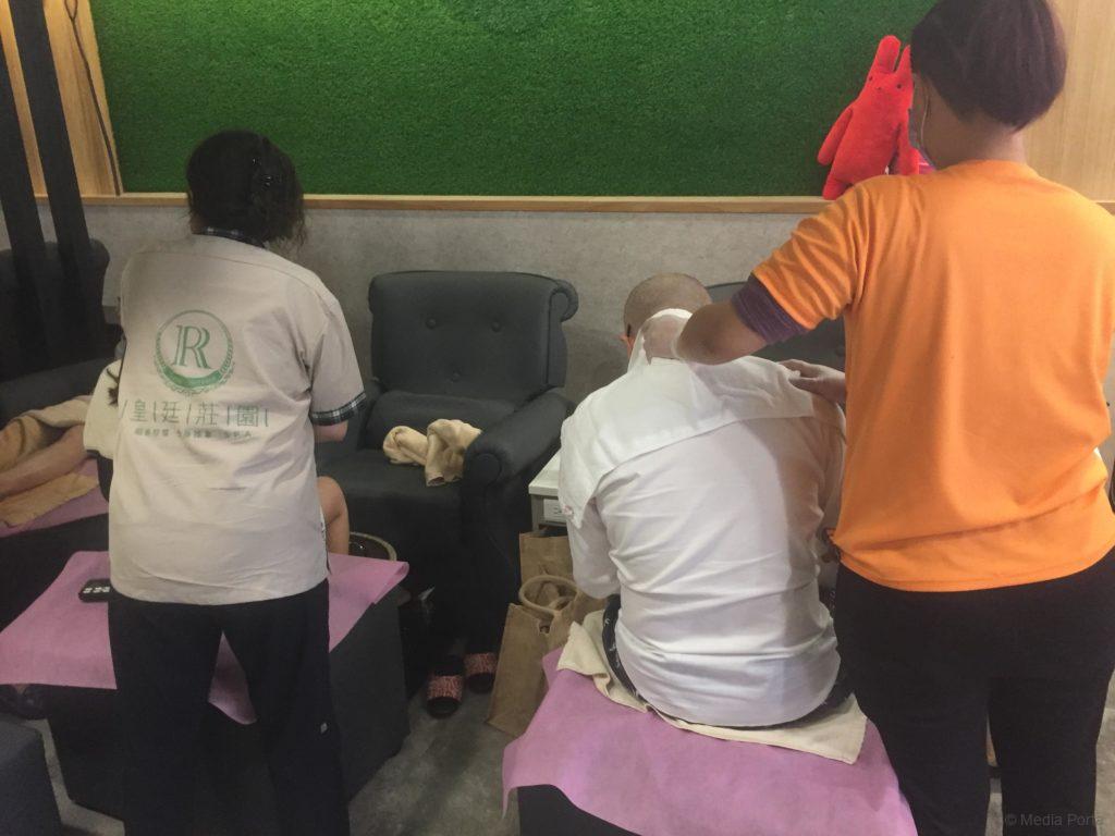 南京松江の方に宿泊して、散歩していたら、ビジネスマン風の2人組が清潔そうなお店に入って行ったのでどんなお店かなと見てみるとマッサージ店。昼間なのに地元のお客さんが数人いたので、つられて私も入店してみました。