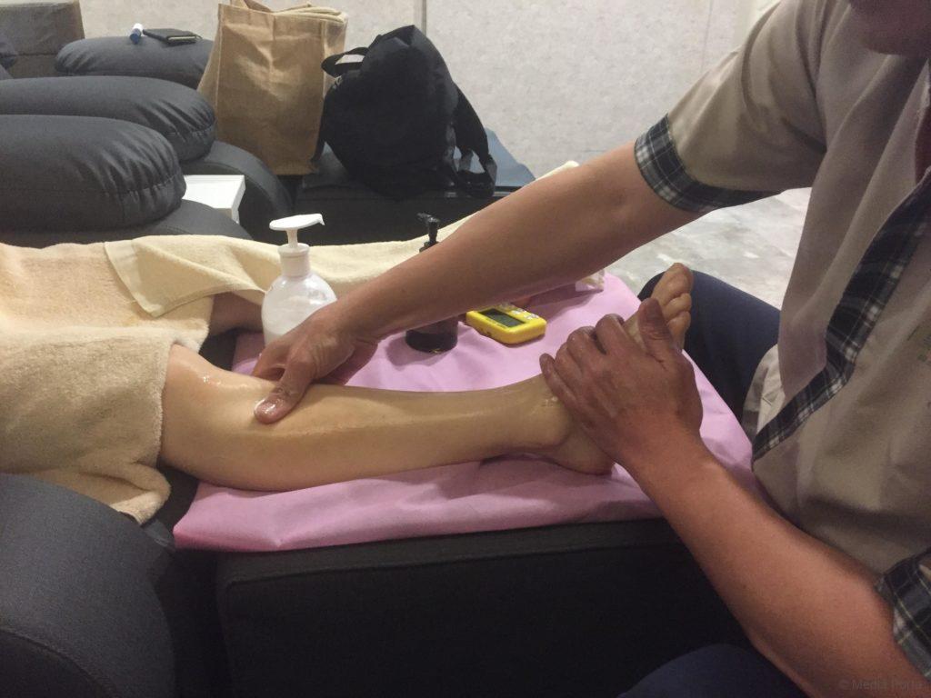 足裏も気持ちよかったけれど、歩き疲れた足全体のマッサージが気持ちよくて、眠ってしまいそうでした。それからホット枕をつけてくれ、首が温まり気持ち良かったです。