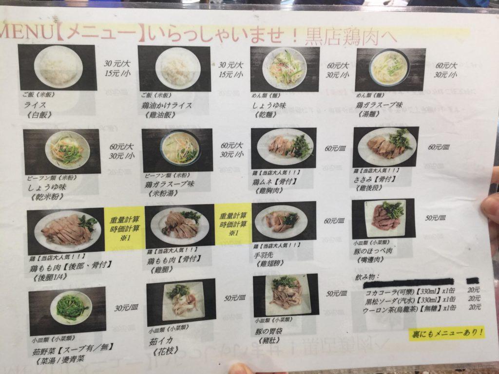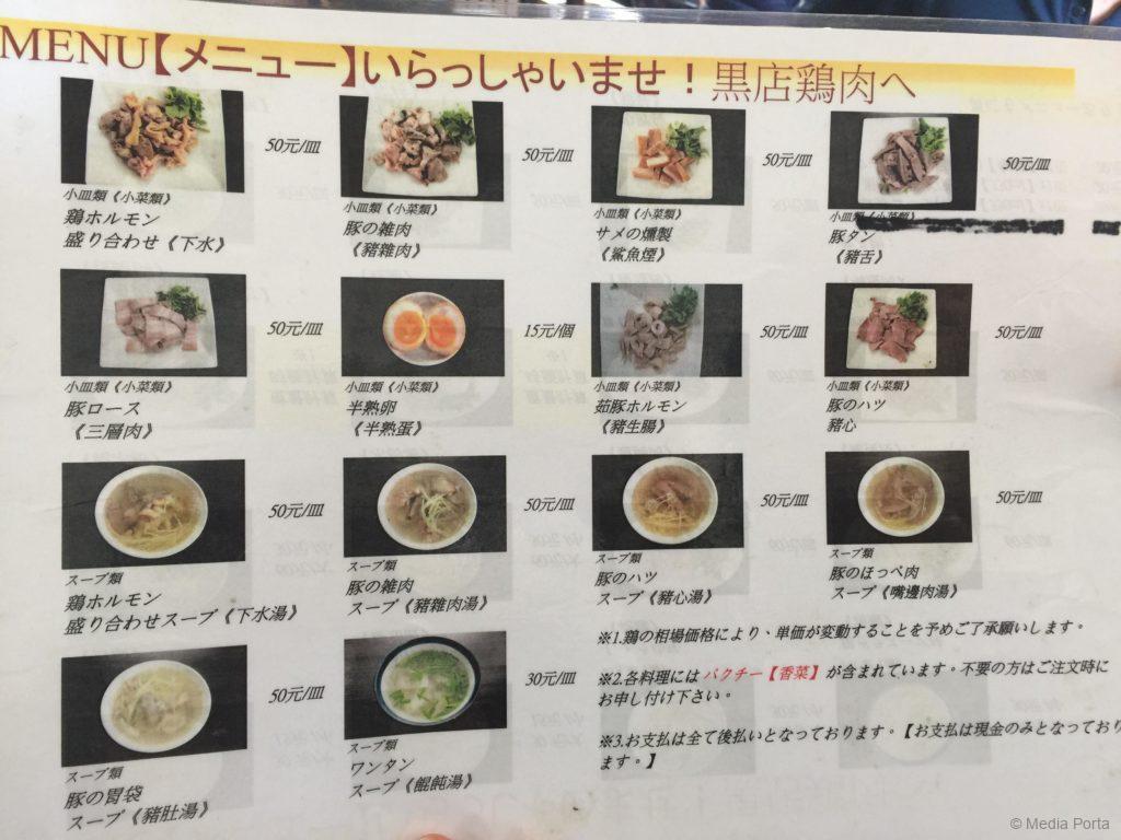 お店の看板。。ない。常連客の利用する「あそこ」でわかるような店なのだろう。メニューを見ると黒点鶏肉とあるので、疑ぐり深い方は確認してみよう。