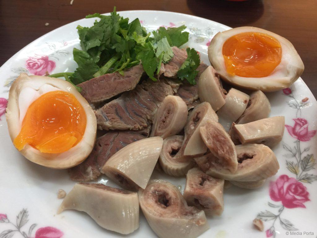 この日注文したのは豚のほっぺ肉と茹豚ホルモン。一皿の値段もとてもリーズナブル。